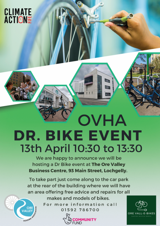 Ore Valley Housing Association will be hosting a free bike repair and information session at the Ore Valley Business Centre in Lochgelly on the 13th of April between 10.30am to 1..30pm.