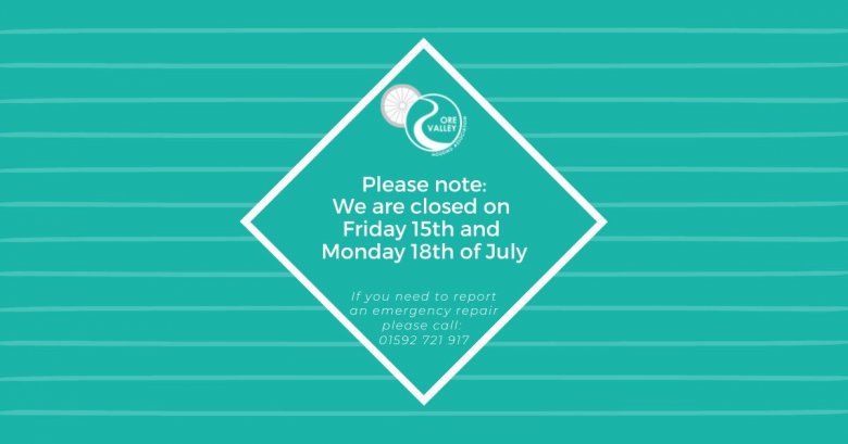 We are sorry for any inconvenience but our office will be closed from Friday the 15th to Monday the 18th of July. If you need to report an emergency repair please call: 01592 721 917.
